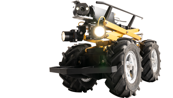 Functioning on up to 2,000 feet of Single Conductor cable, the Steerable Storm Drain Tractor transports Subsite Electronics mainline cameras deep into storm drains, sewer, and water pipes 24 inches and larger. Its remote-controlled motorized camera lift allows the camera to be centered in pipelines up to 60 inches in diameter.